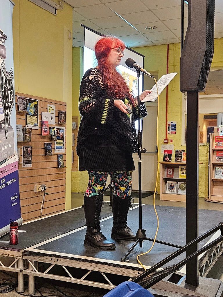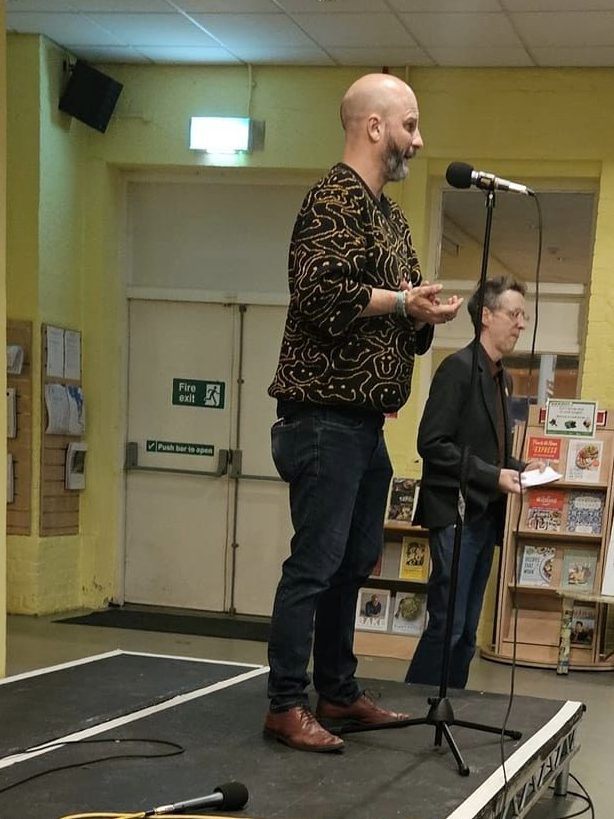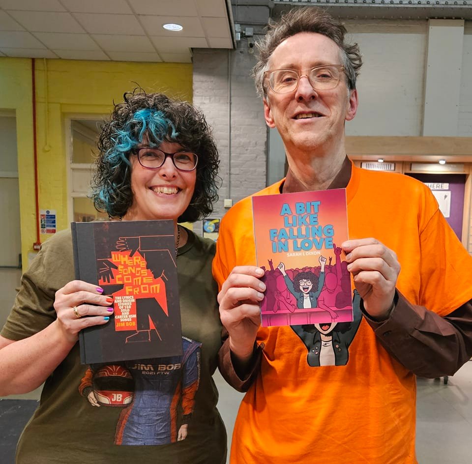 I read poems from my 90s music fan book, A bit like falling in love. It took a couple of short, shaky poems to settle into the room but by then I was enjoying myself and shared a very new poem called Why I don’t sing to you. I found I was telling myself not to glance over at Jim when reading the poems that mentioned him or events where he knew he was there – First gig after lockdown, Albion Fire and the final poem that ends in a Jim Bob mosh pit – as the book should – the last words of my set… in a moment hazy with smoke machines and utter love.