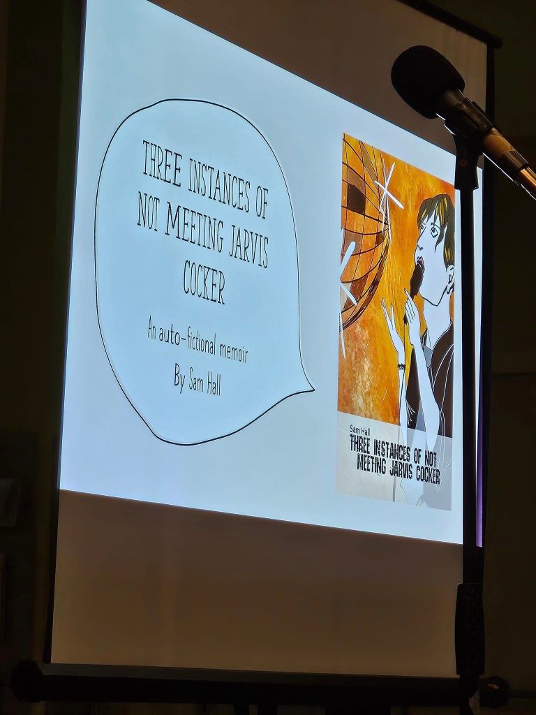 Sam Hall launches her new book ‘Three Instances of not meeting Jarvis Cocker, an autobio-fictional graphic novel and shows us some screenshots of the book and tells us the history of how it came about.