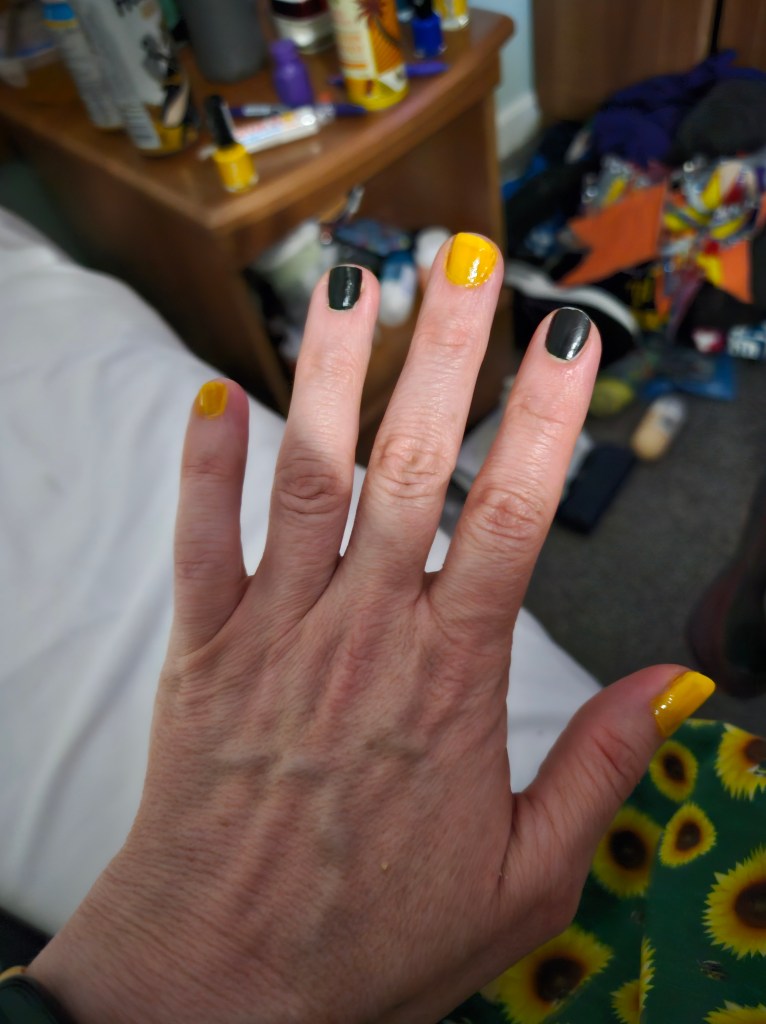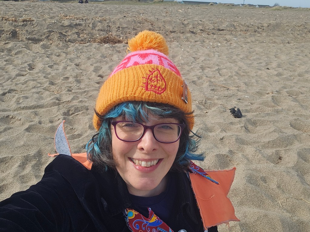 I then went to the beach and had a meal deal and video-called my Mum for her birthday (didn’t quite make it to touch the sea because I remembered the time and had to rush back to Hotshots) I then went to a Gig Life Crisis group meet up at and we got a photo and then watched the Malakites who were very good. Went to meet up and put a sticker on which I hadn’t realised was still on when we were at the disco later marking Julia and I out as Shiiine Singles 😊