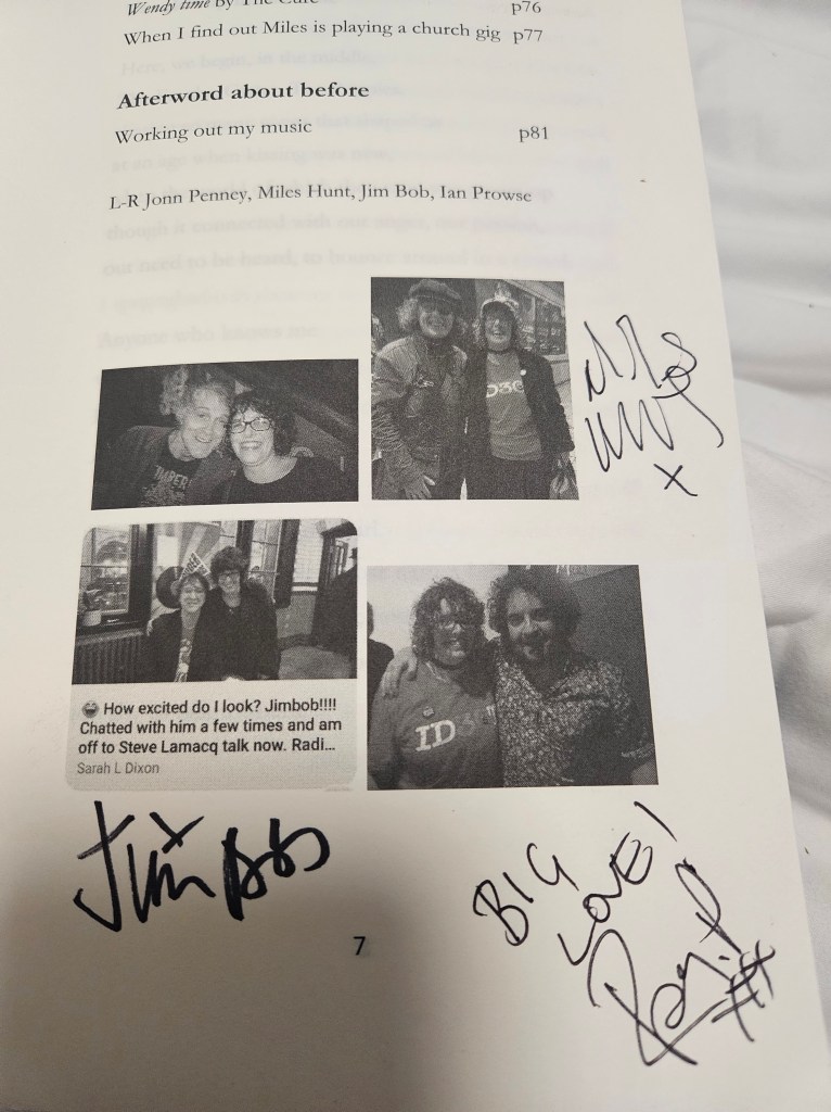 I clocked Prowsey over by the door so said Hi and he was there with a big hug. Asked him to sign my book and chatted quite a bit about how if I put on a gig the weekend of the big knees up in Liverpool he is fine for me share it over all the socials and he will share it for me too. He said, ‘Do come back and hang out with us if you like...‘ but I went to the bar and as I didn’t know anyone else and they weren’t forthcoming in introducing themselves I felt too awkward and then went off dancing with Julia for a while.