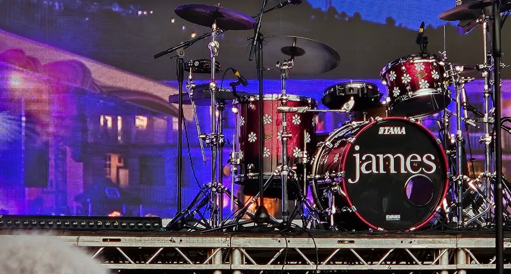Tim’s voice is always high in the mix. Keyboard and then straight in… This is one of my favourites, maybe because it is the first James song I heard. I was hoping it might be played at The Piece Hall. Maybe I will have to go to more James gigs to hear it now.