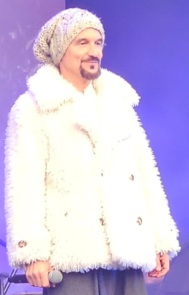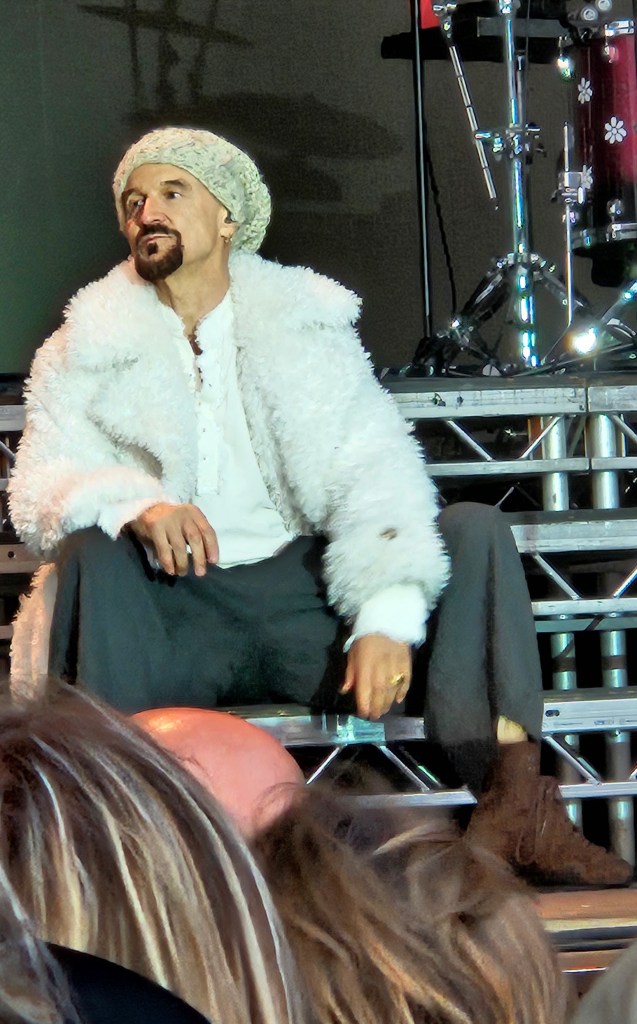Tim Booth’s coat and hat deserves a section all of its own