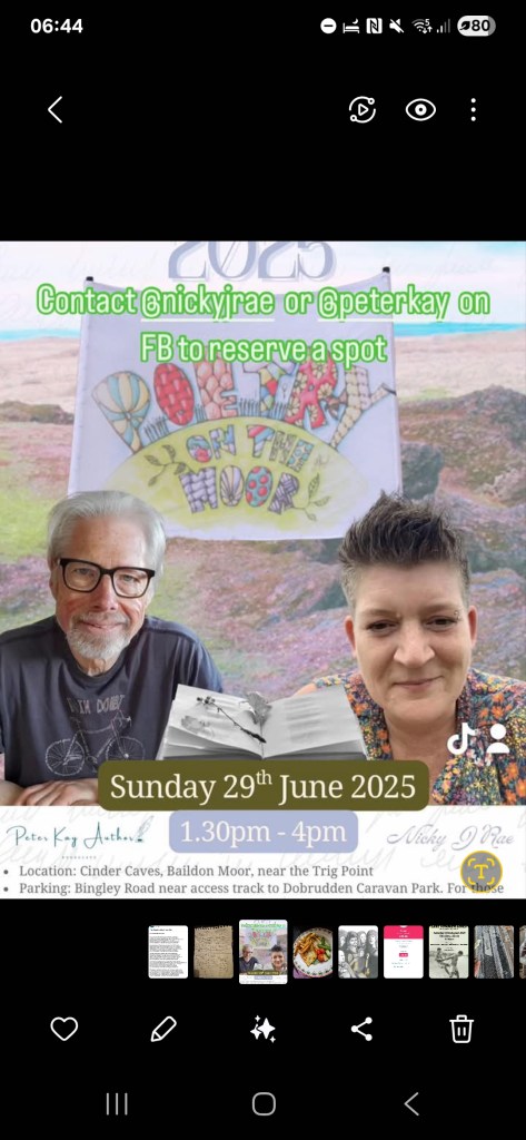 I practiced poems from the show in front of my mirror and an audience every chance I got at Grand Plans and Attic Stories in Huddersfield, Marsden Library Poetry Open Mic, a guest spot at WOW! in Hull Library and on Baildon Moor at Poetry on the Moor.