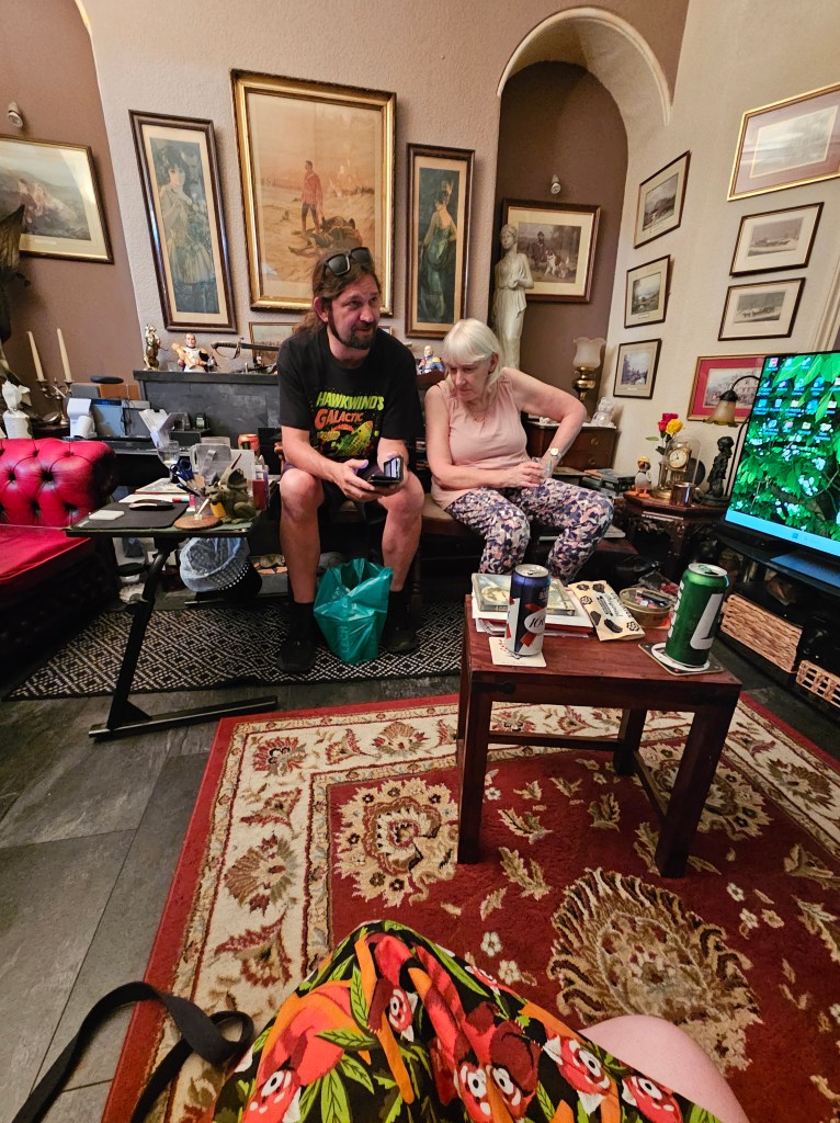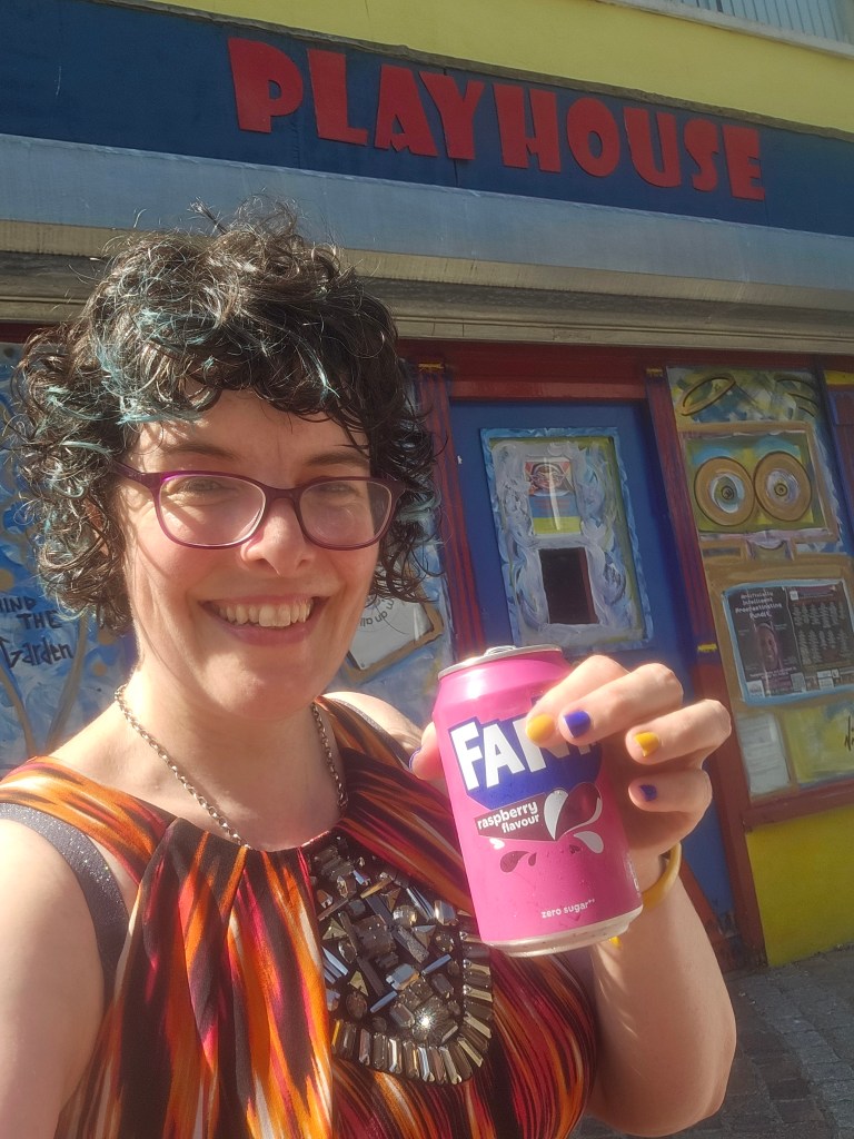 Matt and I went out for pre-show breakfast, fuel for the show, and I ran through the poems/pieces in my head while Matt was in the breakfast queue. The day was very hot and the walk along the promenade was long, so I went via the Off Licence to get some cold cans of Fanta and Hobgoblin IPA.