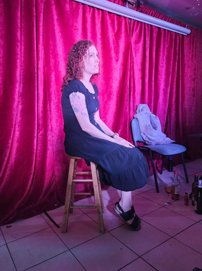 The rest of the evening at the West End Playhouse was expertly hosted by Sister Christian and Lorraine Hoodless work is progress mentioned peri-menopause and situations I could definitely empathise with and she shared comedic anecdotes about daily life. Zoe Lambert performed a polished, moving and many-voiced show which received a well-deserved 5/5 review. I had heard Zoe exploring some of the ideas in the show when she performed at my Quiet Compere poetry showcase back in 2022 and it was exciting and interesting to see how this had developed into a full-length show.