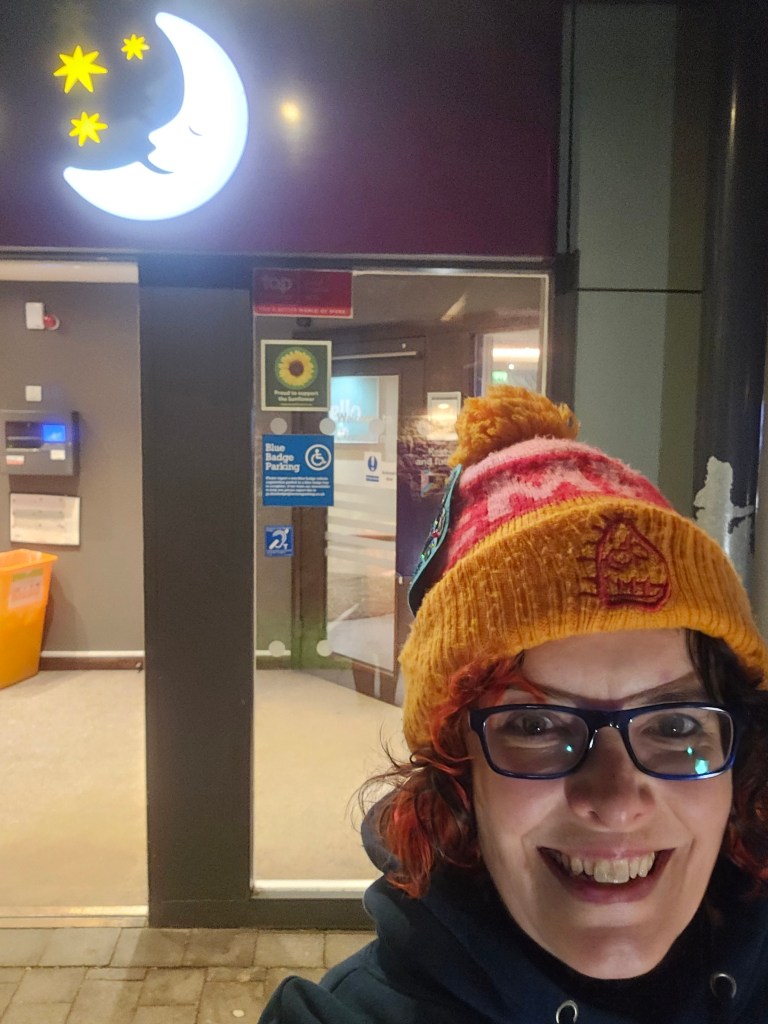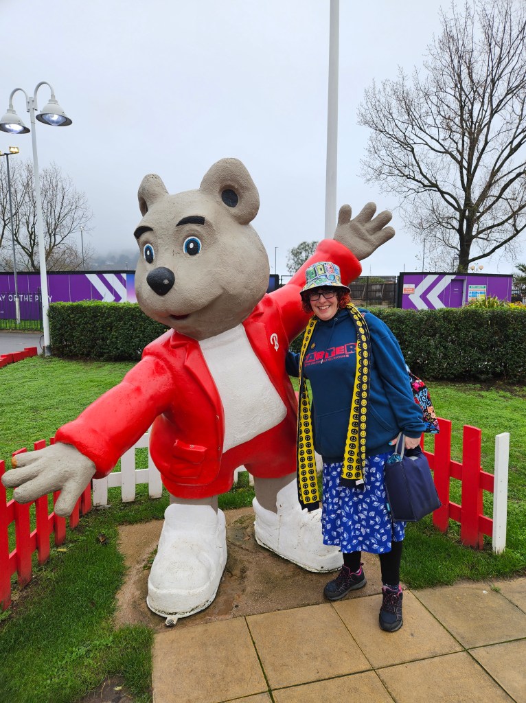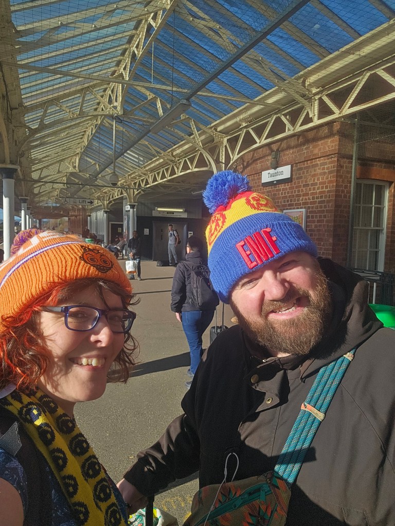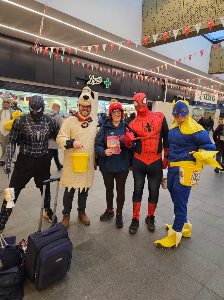 A bus and a train and then a photo with the Children in Need people at Leeds station. Muttley was pleased I knew who he was. I get the impression not many people knew who he was… even though I said ‘the dog from Wacky Races, right?!’ It was an early start. Then a very slow train from Leeds to Taunton (even slower as speed restrictions were in place due to Storm Claudia). The train took 5 hours instead of 4. I met a group of Shiiiners who had been to all but one and we had a bit of a chat on and off.
