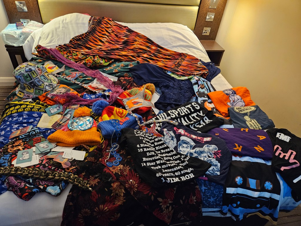 Oh wow! To get the audience to chant, cheer, whoop and whistle for encore was a lot of fun with a larger and a music audience rather than a poetry one. They went full on encore racket which was great. I did managed to get my head tangled in the t-shirt and headset and I heard them going quieter and had to stick my head around the corner, tell them I was having a wardrobe issue and they would have to carry on for another few seconds, and then appeared in my, not-so-surprising-by- that-point encore costume!