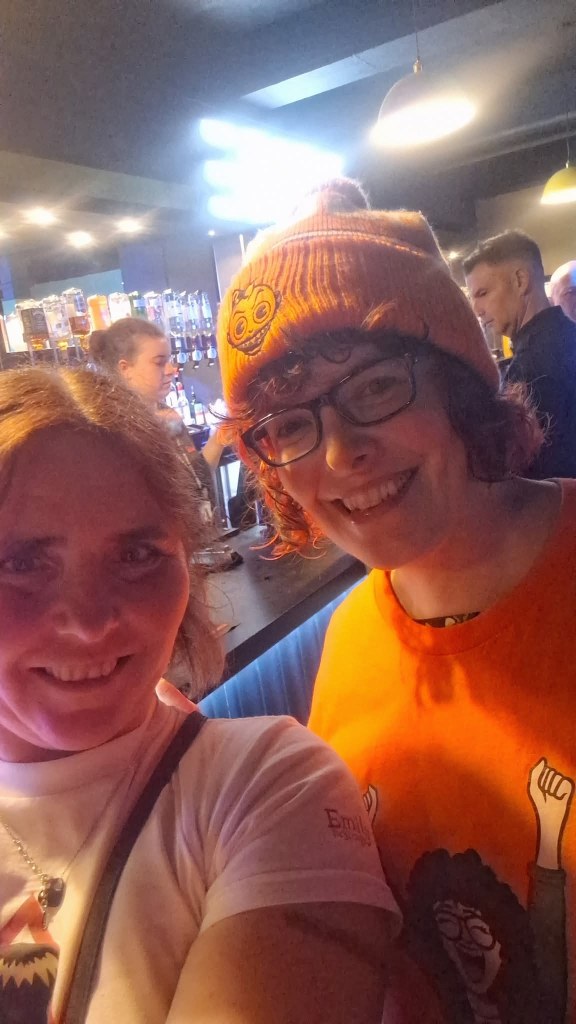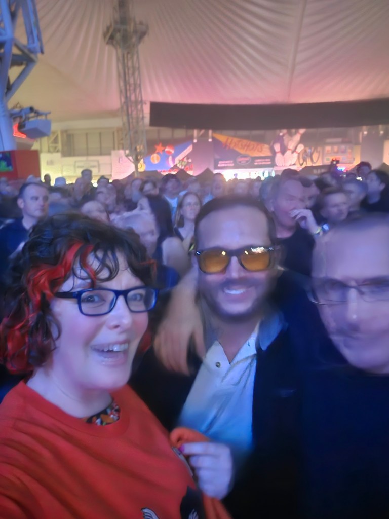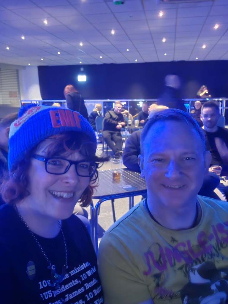 Security was trying to clear Reds and he said ‘Who is being fan-girled here, then?’ I met up with Sarah and Jez who are Stuffie crowd friends I made at Rock City back in 2023. It is always good to see them, loaded with grins and hugs and bounce. No crowd dancing with them this time but I am sure we will resolve this soon in a crowd somewhere – maybe Vent 414 and The Stuffies in Manchester!