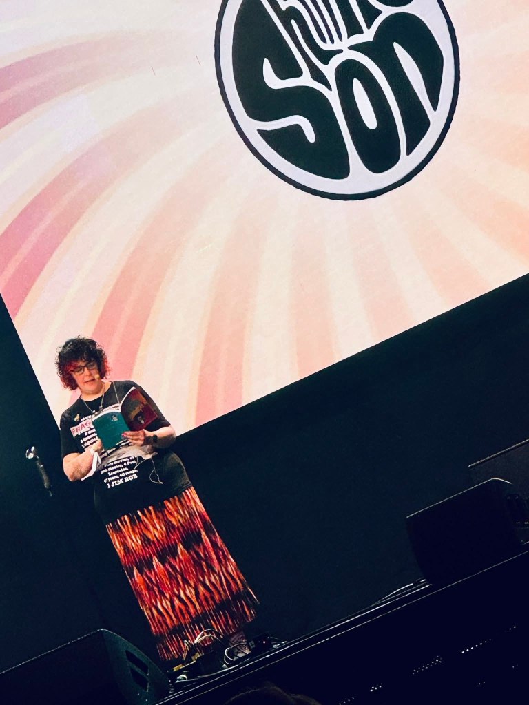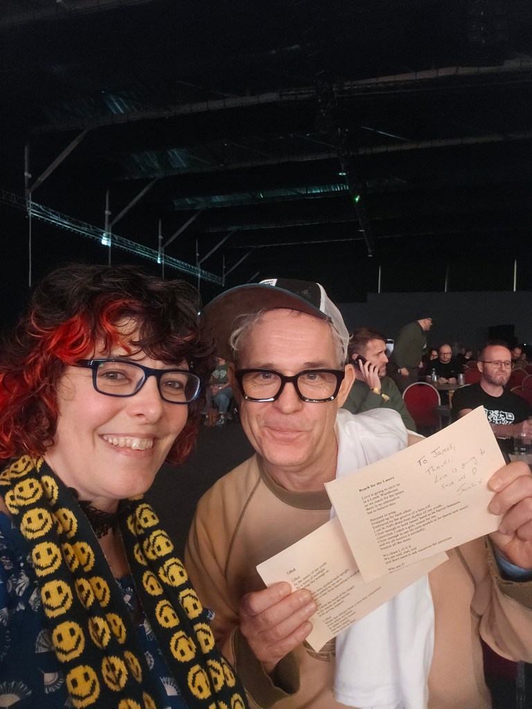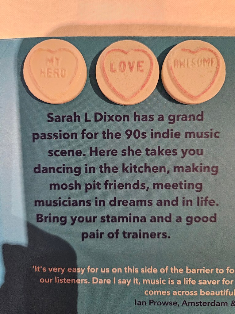 So, it was a little strange over the weekend to be asked for photos and chats by people I hadn’t met before or not in this new guise as a minor celebrity! Someone posted on the Shiiine page that they had seen me but were too scared to say Hello! I said to them they should say Hi! next time they saw me. We met up on the Saturday and had a photo and her boyfriend pointed out later that I was dancing by them (haha!). Very strange to be on the other side of the fan/performer interaction. I am used to it at poetry festivals just because the poetry circles are small and so many of us know each other after 30 years but in the 90s indie circles this is a strange, glorious thing and new to me. One friend, also called Sarah, said they made sure someone who had hurt their hip was okay. When she said her name was Sarah they said ‘Sarah L Dixon!’ Haha! Another friend with the surname Dixon was confused for me a few times! To have mistaken identity stories was amusing too!