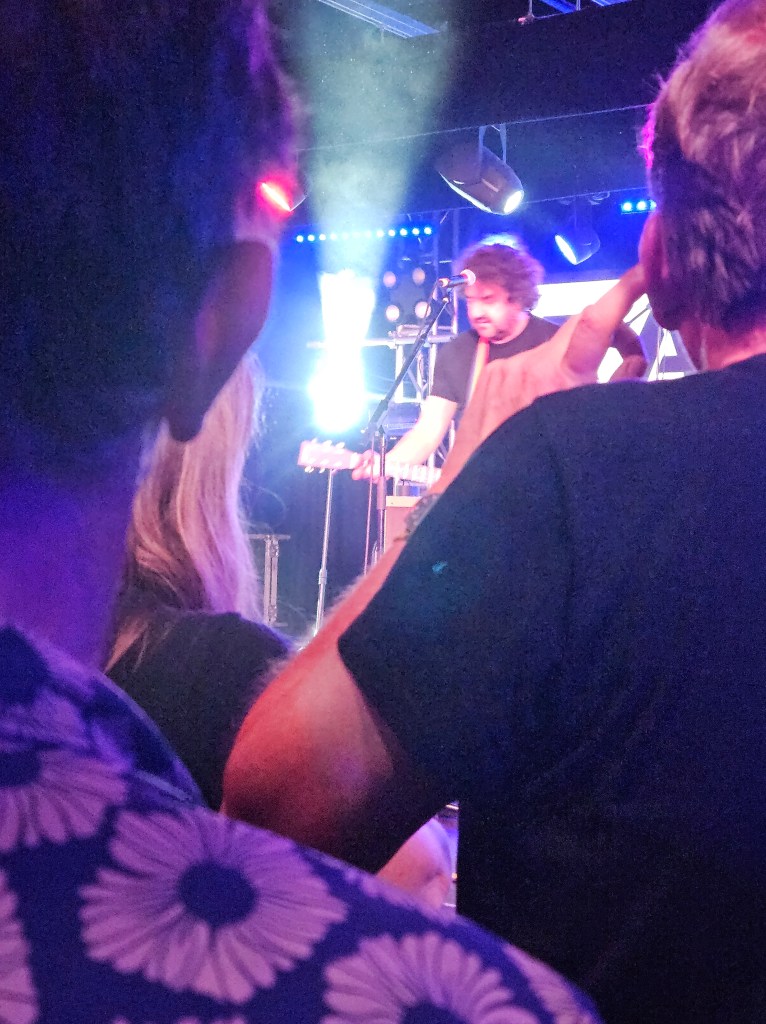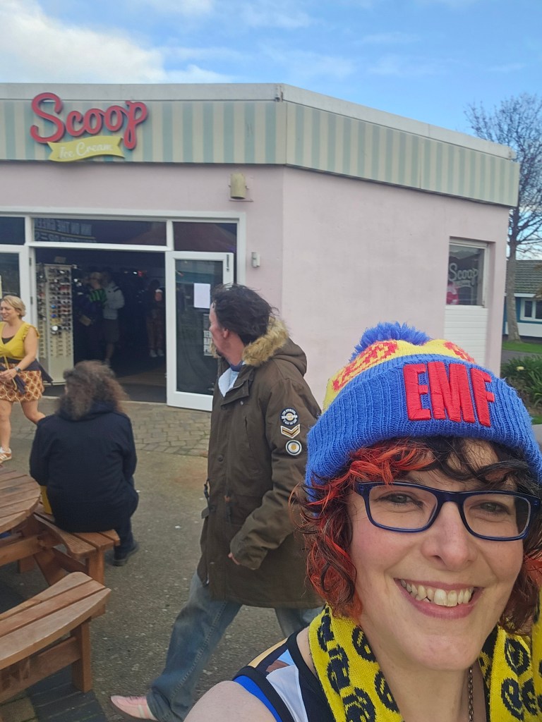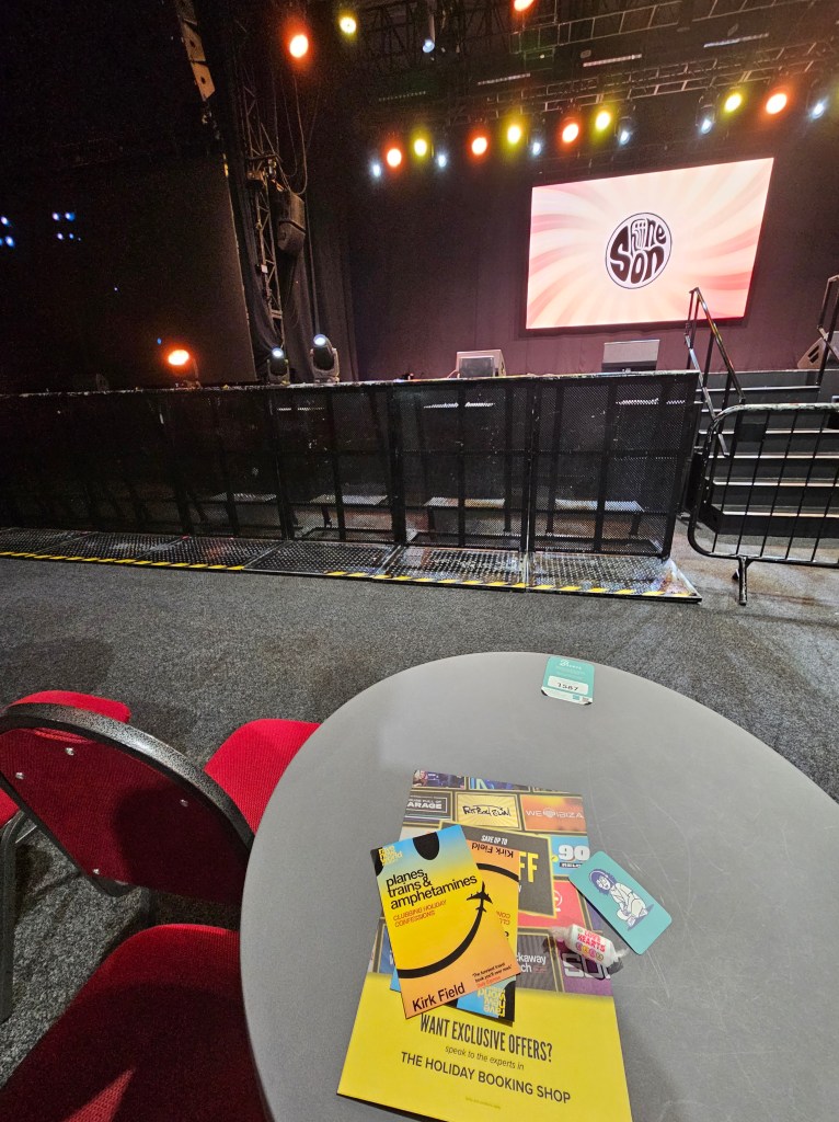 The lack of seating was a big difference between Skegness and Minehead. I had been warned but with the storm there was very little seating as most of that was based outside in the rain! I found a space between two sets of steps in the bar and was resting in this space when I heard ‘Sarah L Dixon!’ and I met three men I caught a taxi to the station with in Skegness – I had not met them all weekend and we shared a taxi and I talked them into buying my book in the length of a 20 minute taxi ride! 🙂 They remembered that. They told me I needed to come near the front with them for Ash and I didn’t take much talking into it!