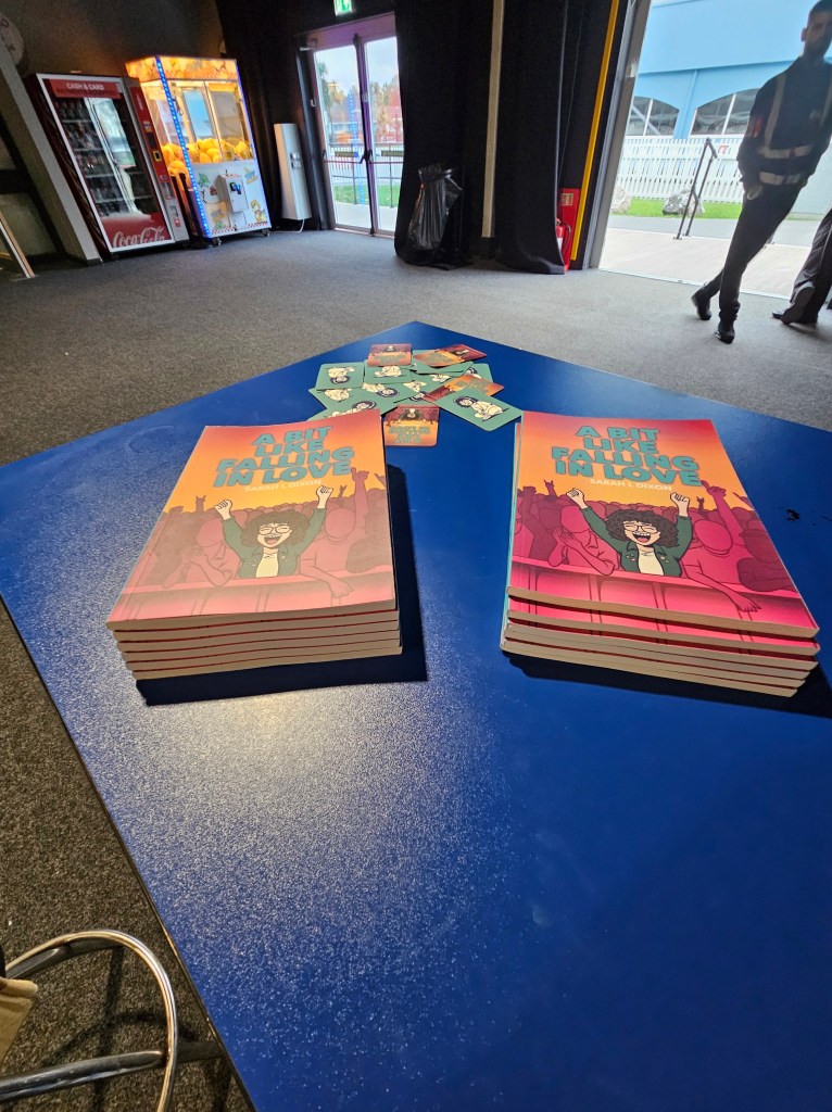 We fell straight into the quiz after my show, though Ollie (our red coat) came to my Green Room to tell me they had tried to make it but were just too late. He wanted to know how it went and gave me a hug. I set up a book table for the way out from the quiz and got lots of lovely feedback. One of security guards was telling me about how much he enjoyed it and we talked about other poets/poetry. He told me there were 250 in by the end of my set. Pretty happy with that.
