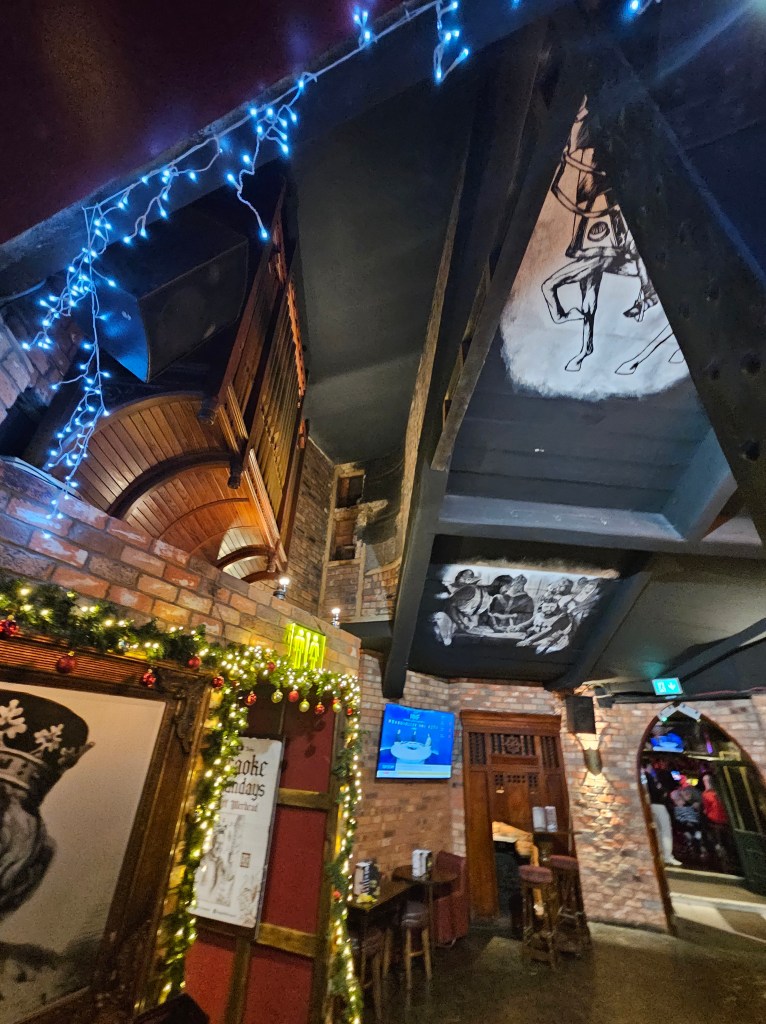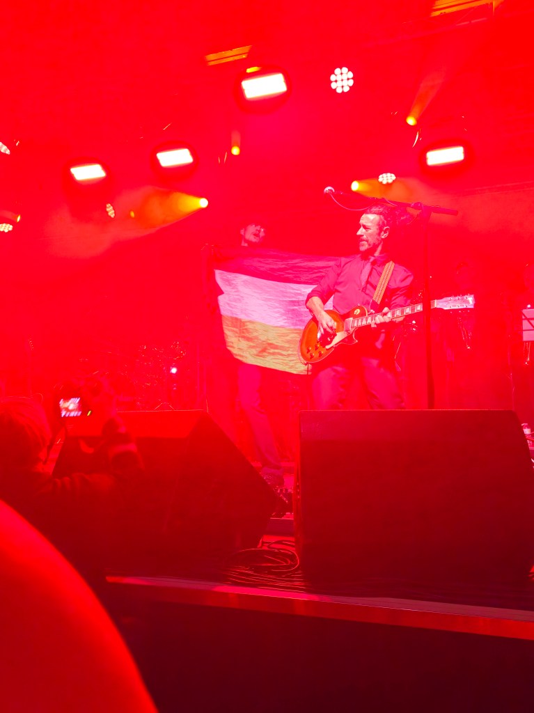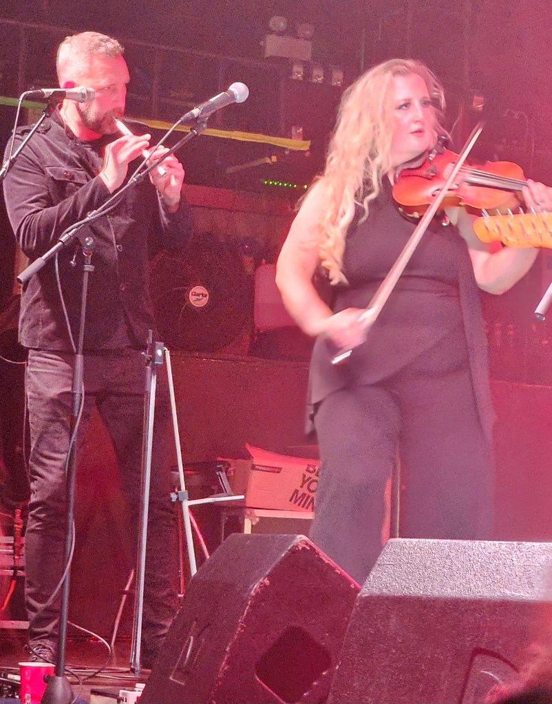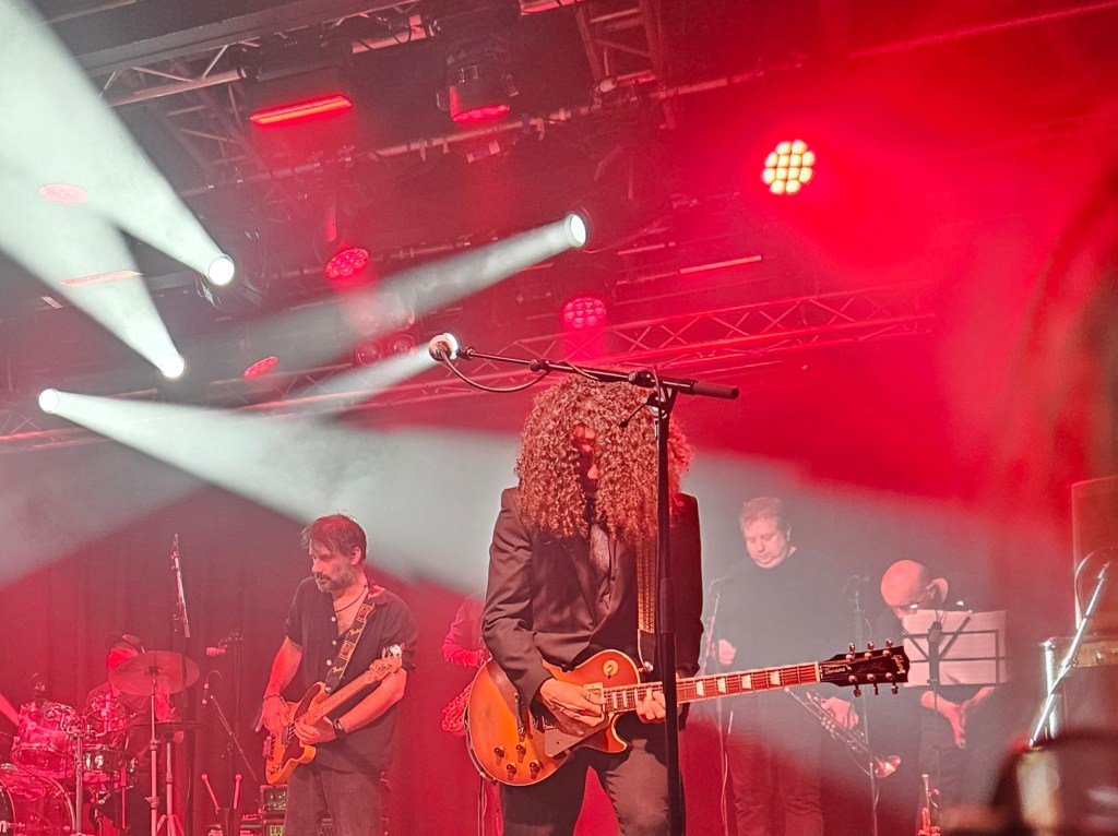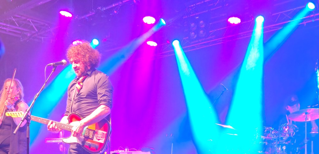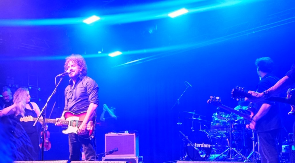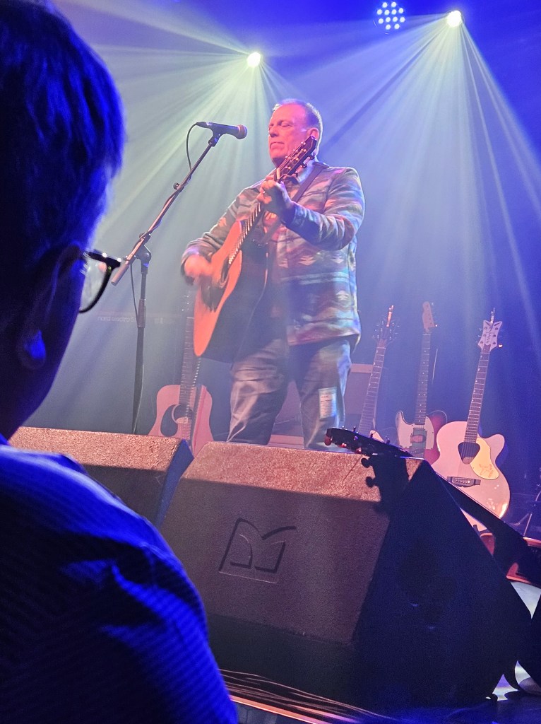 In February 2024 I made some friends at the Ian Prowse and Fiddle of Fire gig at The Parish in Huddersfield, my local venue. They told me I should go to the Christmas Knees-Up and this was not to be missed. I booked accommodation and tickets the next day. When the event came around I went along and as I only really knew Ian and Barry Jones (from Monday Club and merch desks) and I had a bit of a cold I hung back about 20 rows. I still had a brilliant time and enjoyed Amsterdam, The Blow Monkeys and the surprises – in 2024 an appearance by one of Frankie Goes to Hollywood to sing with Ian and confetti canons.