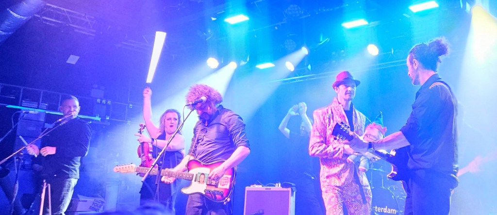 The 14-piece band, ably captained by the energetic, enthusiastic and passionate Ian Prowse, are evidently a close-knit crew and buzz off each other on stage. Mikey, their Bez, has just the best moves and suit. They played many of the hits Amsterdam, Pele, Ian fans would expect. Favourites this time were ‘Home’ and ‘Name and Number’ and always ‘Dessie Warren’ and ‘Battle’.