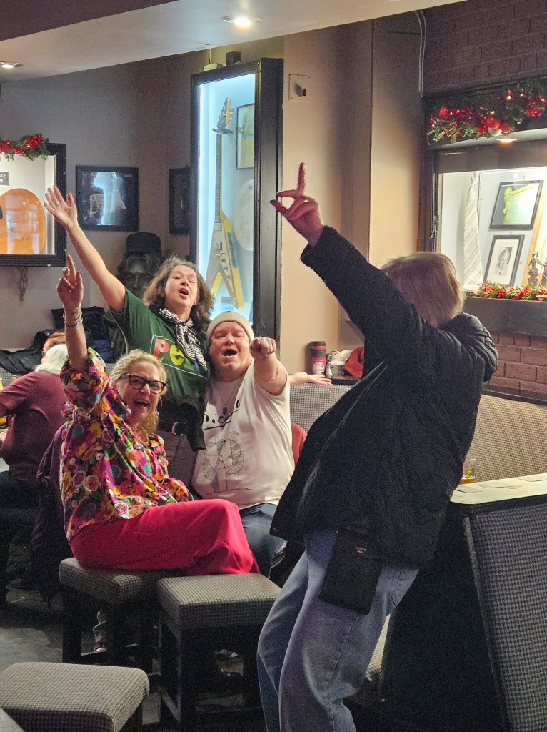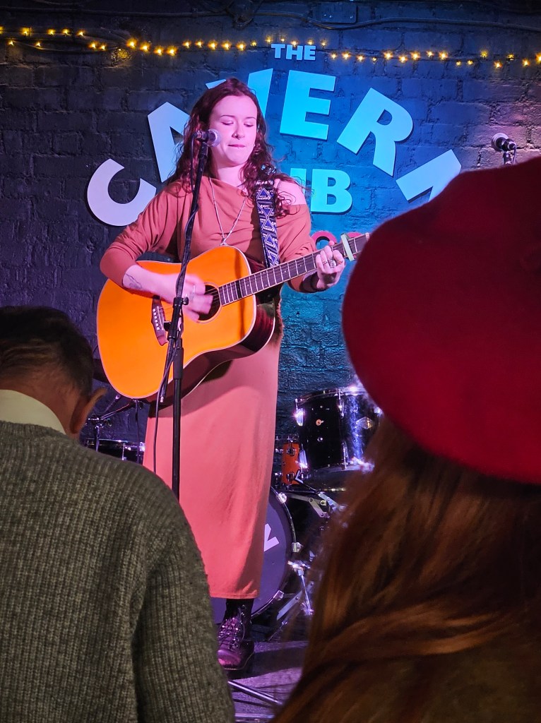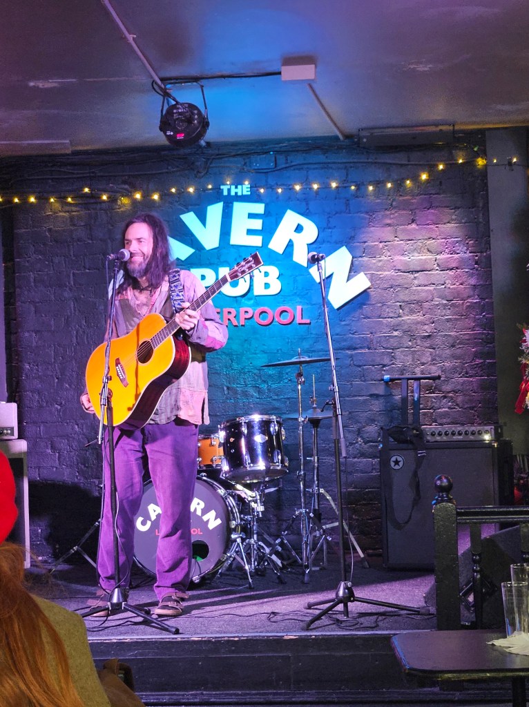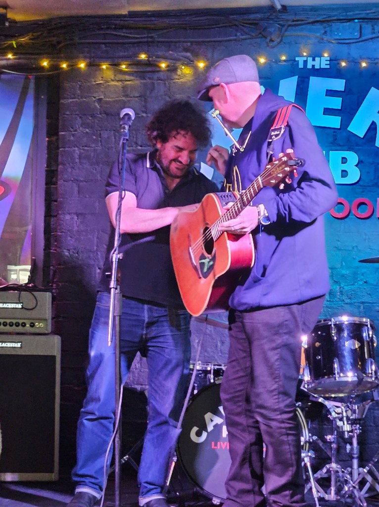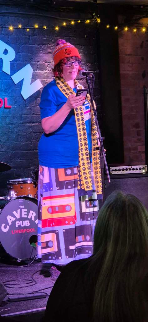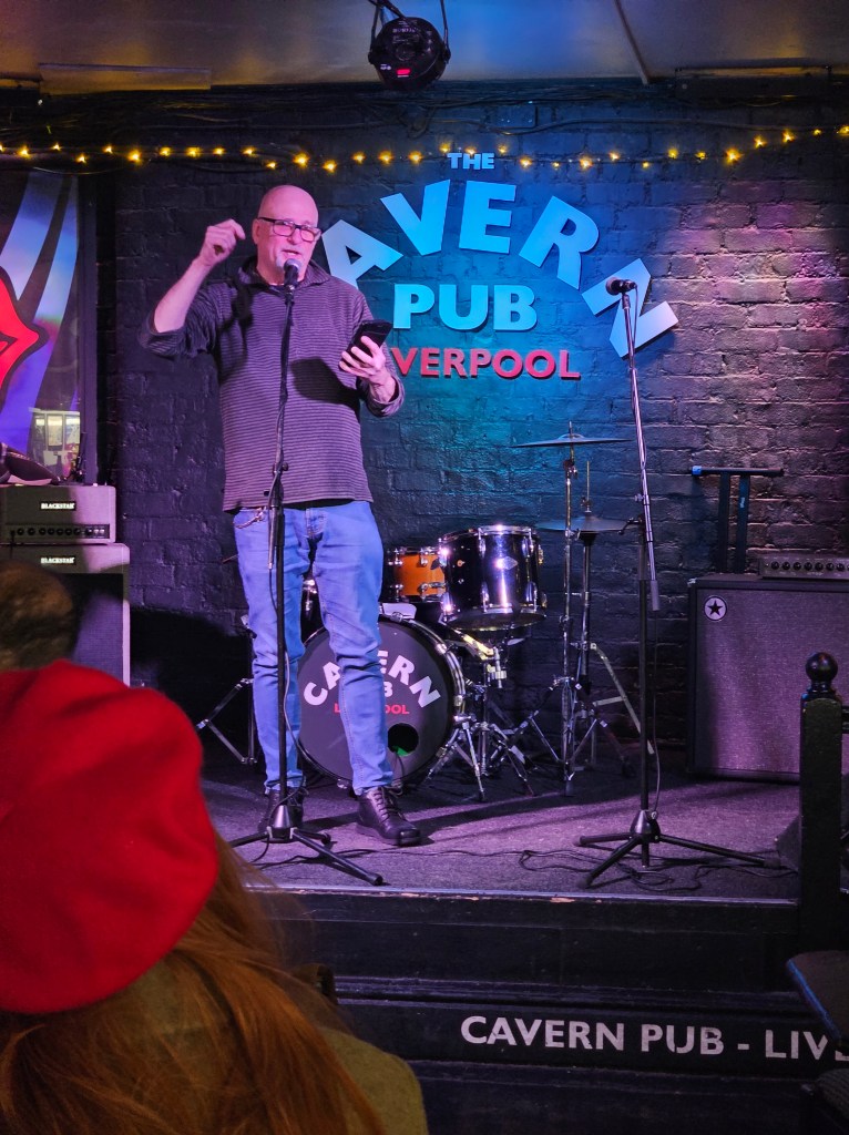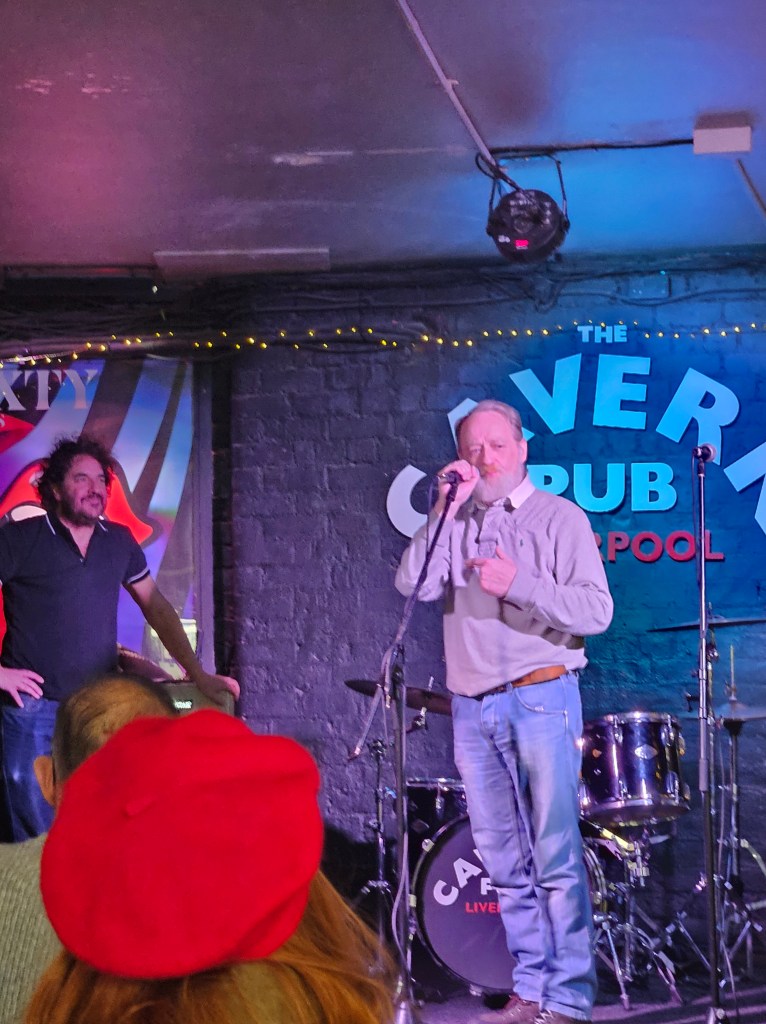 I know how full the Cavern Pub is when Monday Club starts so I make sure I am there before 6. It is so good to see Barry Jones again and I will always remember his welcome (in Ian’s absence in August 2024) the first time we met at the Monday Club. Ian had promised Barry would look after me and he totally did. He made me feel welcome and at ease in a space that was pretty scary to be performing poetry at when most acts were musicians and I didn’t know anyone else. It was great to see Barry again and catch up.