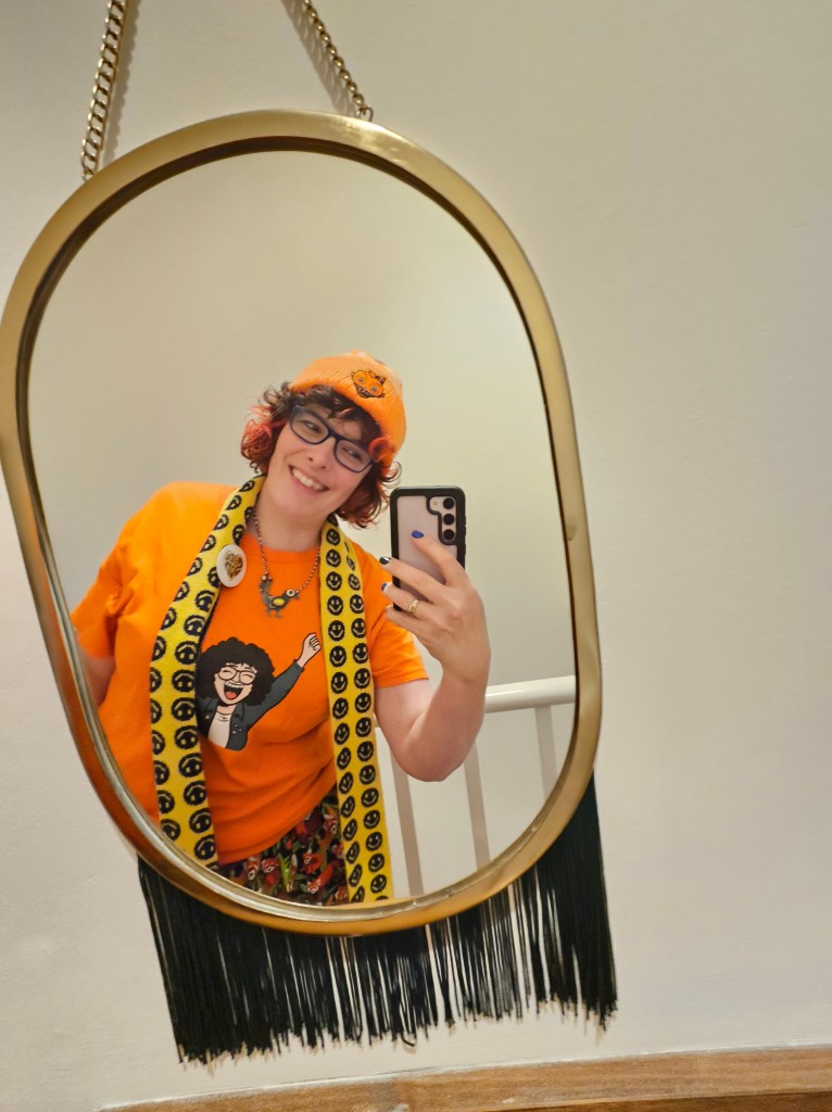 I met people who had been at Shiiine the weekend before who missed my set and asked if I would be performing at Skegness. I also made two new friends on the front row, Tom and Angela and got to meet Rob on the merch desk. Half of a dozen of us had a great chat and exchange of hugs at the end. Paul was hugging the audience in February and I didn’t ask for one having already given him my book. I made up for it in Hull and we had a hug or two and it was great to catch-up in real life. We wore each others’ merch and my nails were painted to match the book and the album – I really love the colour-coordination in the photos of us below.