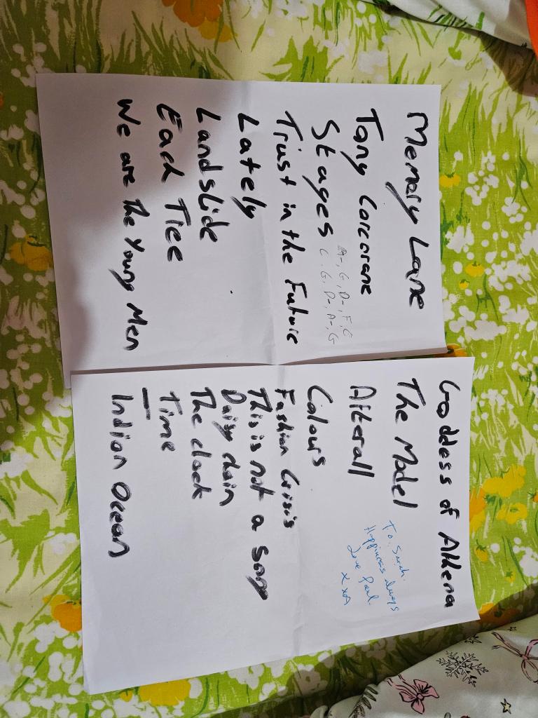 I met Paul before the gig and he gave me a hug and a grin. We had a brief chat and it was brilliant to meet in real life after connecting through music, poetry, social media and our zoom chat. Then, after being insulted for wearing a bright hat and scarf (there is a new Trainspotters poem but I am saving that for the next book) by some scallies who were passing and trying to be cool. Paul and I talk about not caring about being cool any more in the interview. We also talk about donkeys like teddy bears, deer, herons, affection and sons. None of these were things we planned to talk about. Paul also told us a lot more about the new album than I expected him to be able to tell us. I can’t wait to hear the new album now!