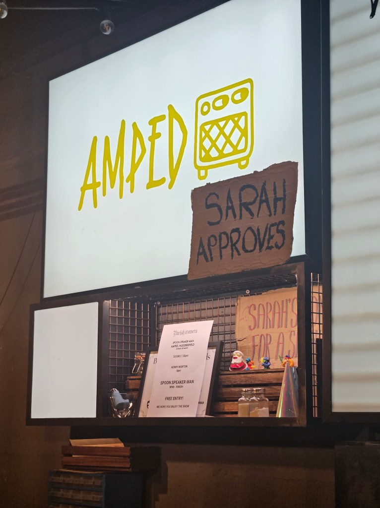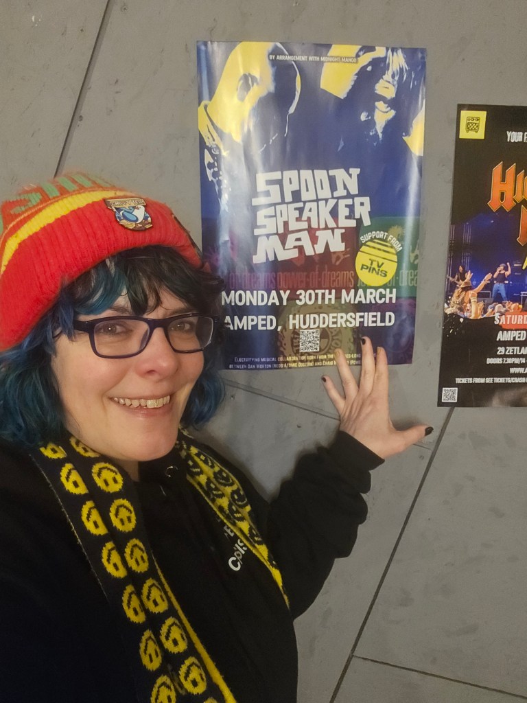 The Shiiine blog will be here soon, but first a surprisingly busy and exciting week straight after. Spoon Speaker Man persuaded me to go to their gig at Amped in Huddersfield. I went to this gig, tearfully walking the streets of Huddersfield, sad Shiiine On was over catching most of the sound-check and then going for food with Doug Smith and Karen Tozer Smith and having a lovely catch up.