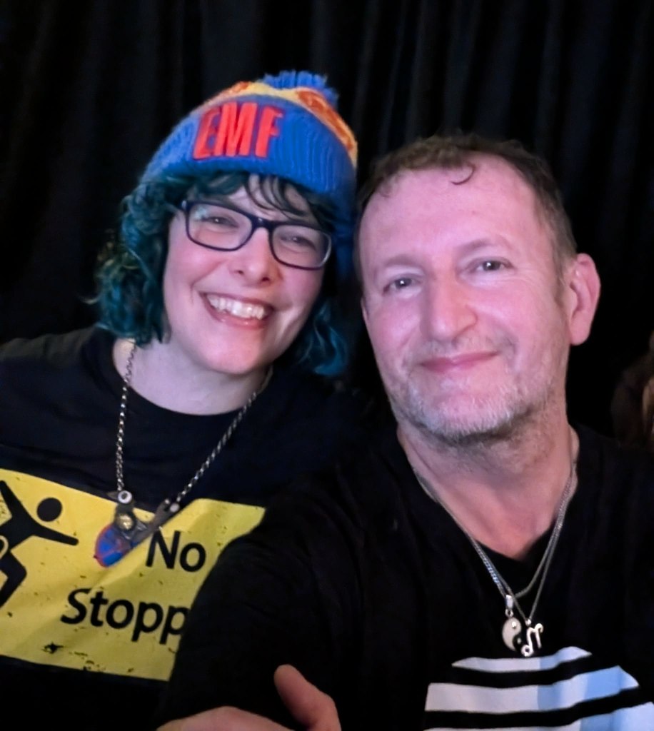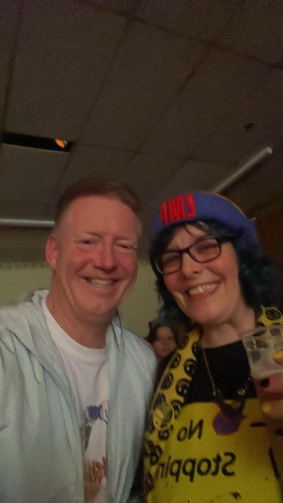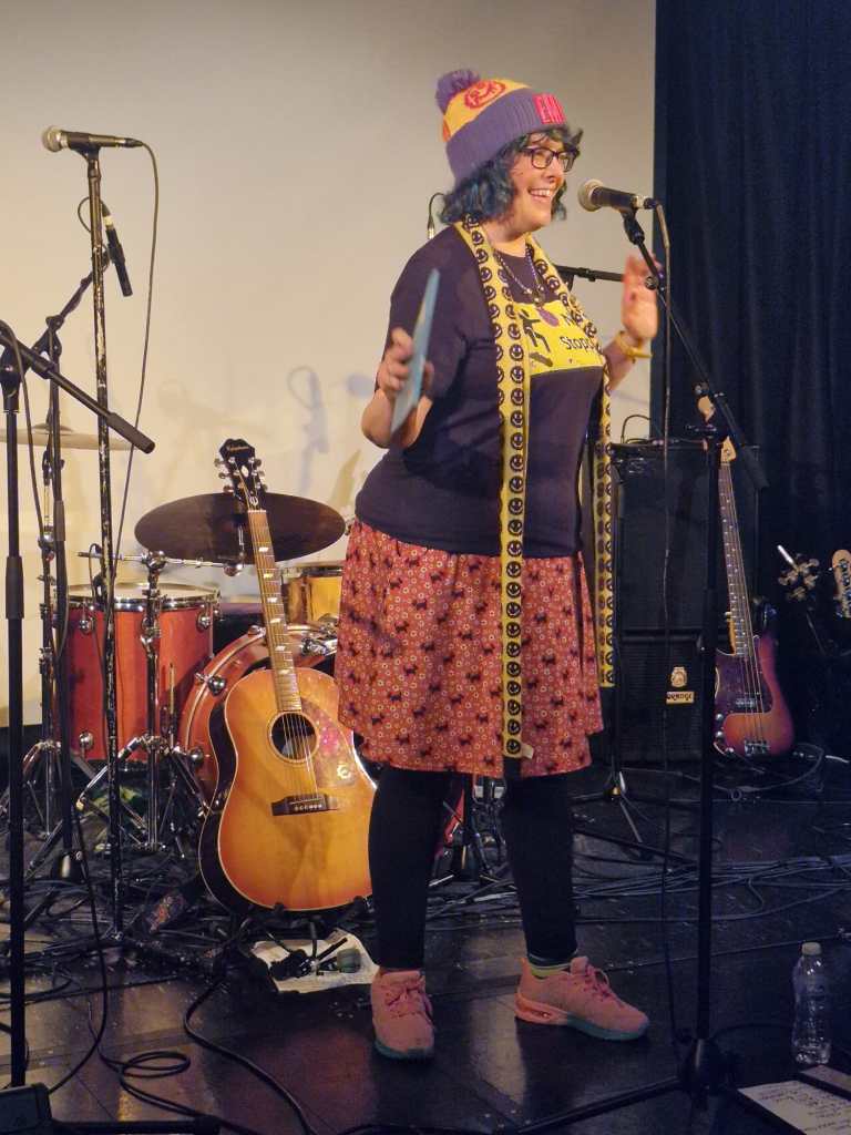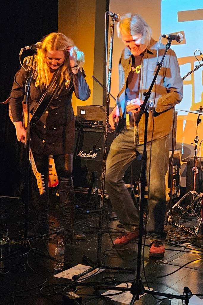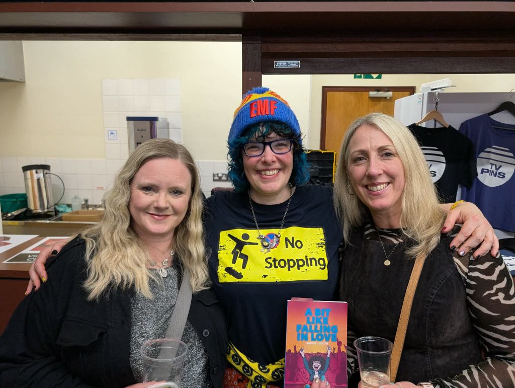 Jonn Penney (secret special guest) walked in the back door just as I was starting the second poem and he apologised for missing the beginning and we hugged and we had a good catch up chat which we didn’t have chance for at Shiiine. I wasn’t sure whether I would lose my way or freeze being in a different type of event but I got up there and breathed and delivered. I did clock Jonn’s arrival and then went, okay, Jonn’s there, that’s fine, breathe, continue. I am becoming strangely accustomed to 90s indie legends now being supporters, my audience and friends. Having read my poems in front of Jim Bob, James Atkin, Jonn Penney and Ian Prowse is just par for the course now. A situation 15 year old Sarah would not have believed was possible and she would definitely have been still and silent and frozen.