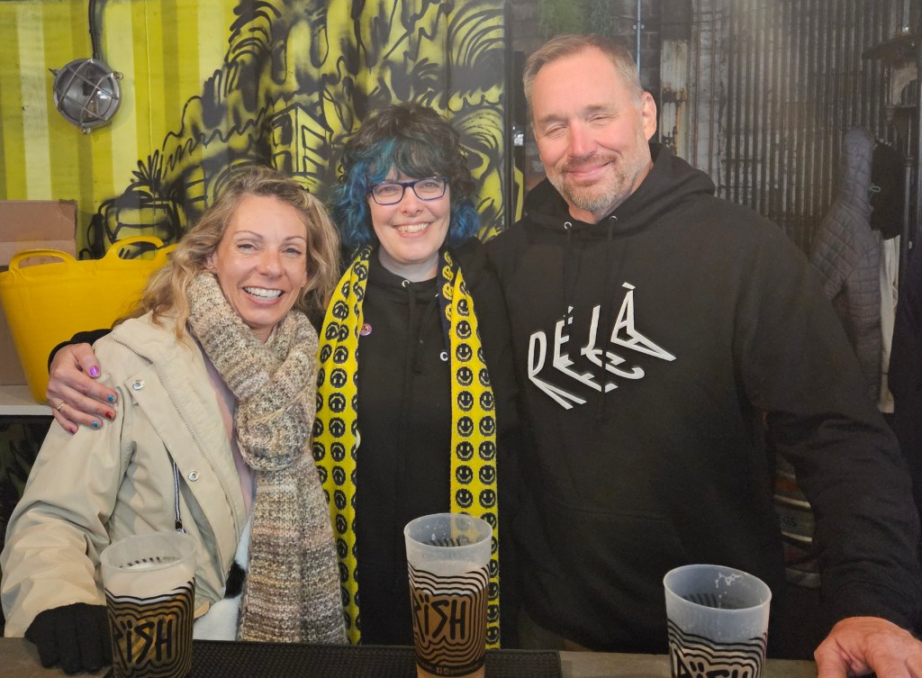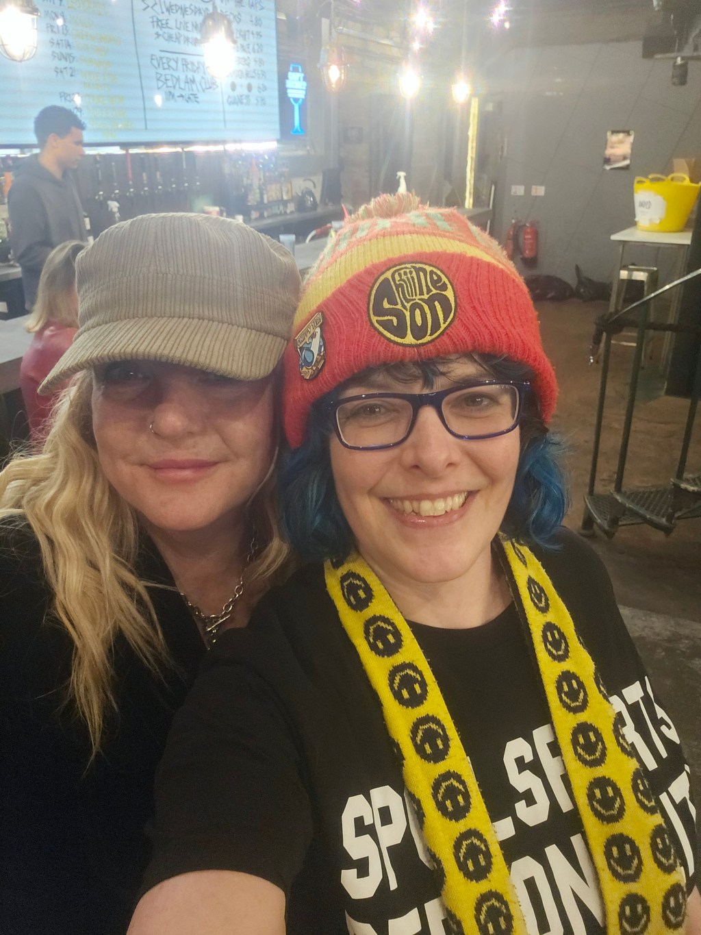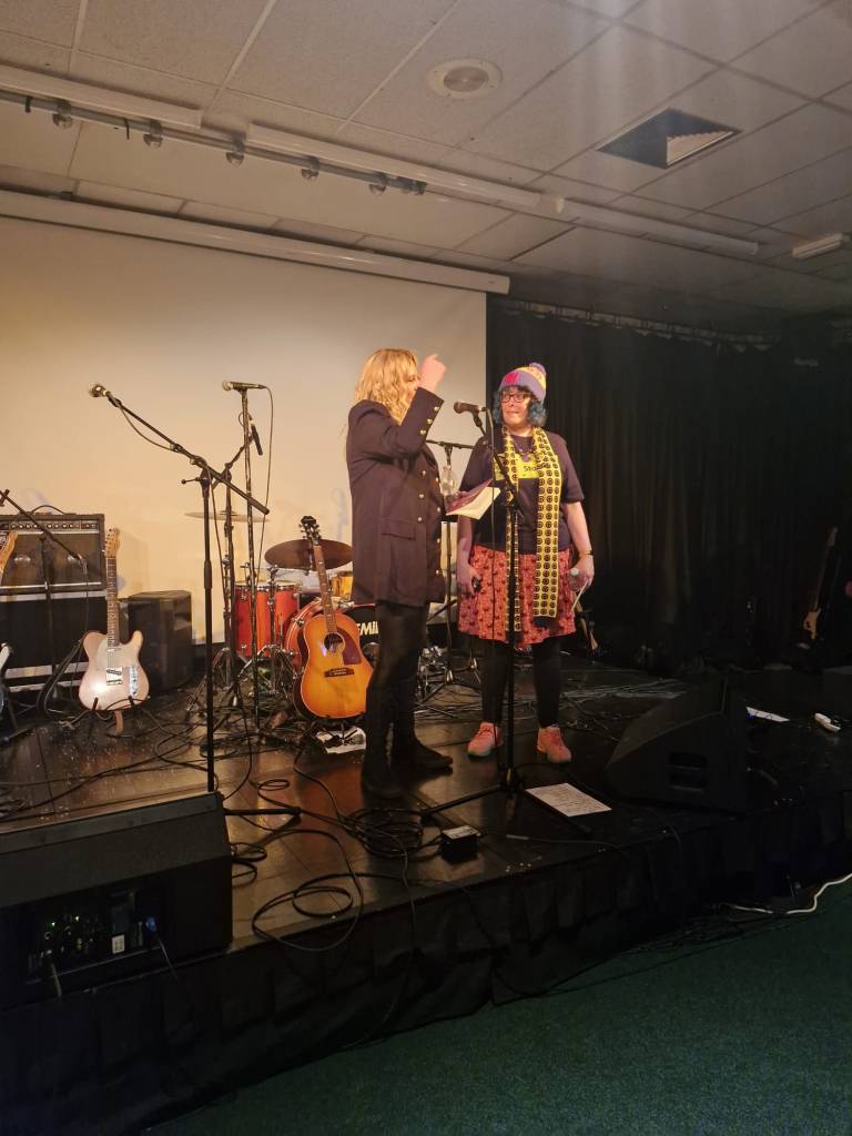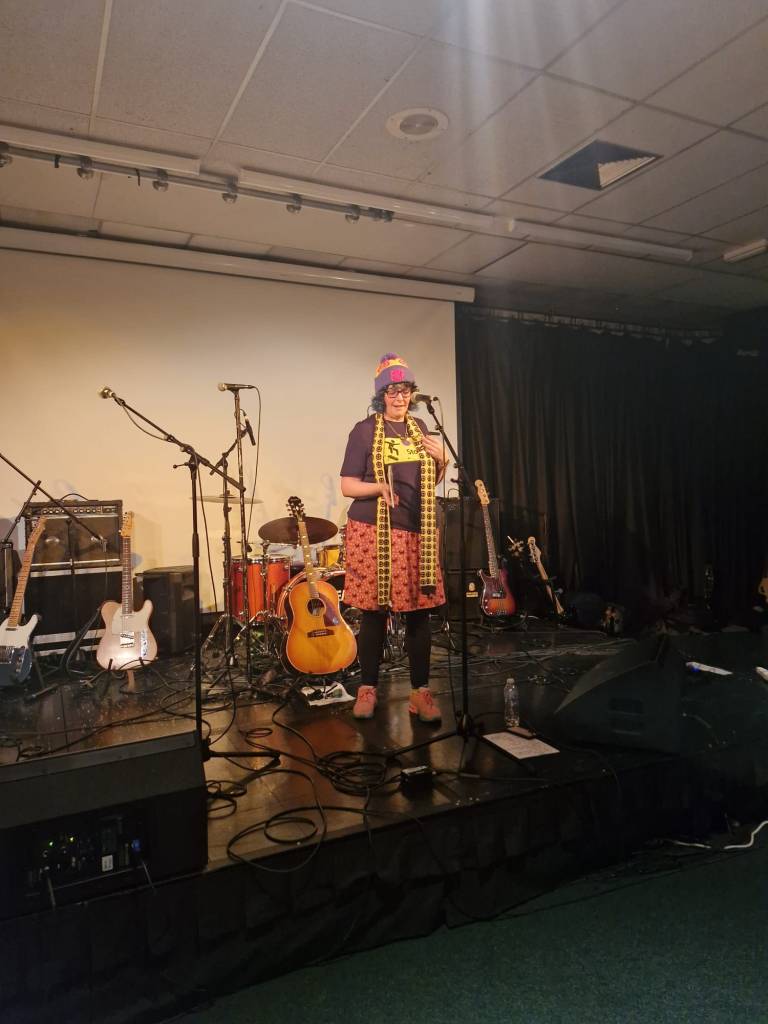 Jonn Penney (secret special guest) walked in the back door just as I was starting the second poem and he apologised for missing the beginning and we hugged and we had a good catch up chat which we didn’t have chance for at Shiiine. I wasn’t sure whether I would lose my way or freeze being in a different type of event but I got up there and breathed and delivered. I did clock Jonn’s arrival and then went, okay, Jonn’s there, that’s fine, breathe, continue. I am becoming strangely accustomed to 90s indie legends now being supporters, my audience and friends. Having read my poems in front of Jim Bob, James Atkin, Jonn Penney and Ian Prowse is just par for the course now. A situation 15 year old Sarah would not have believed was possible and she would definitely have been still and silent and frozen.