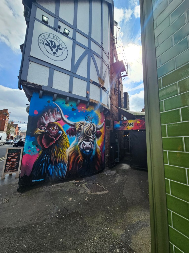 In the meantime I had visited the murals again (see Wolves blog for mural photos) and been in a t-shirt printing, incense and badges shop and left with 2 new t-shirts and 6 new badges. Chris and Sal who own Pentagraphix were lovely, knowledgeable, chatty and passionate about what they do.
