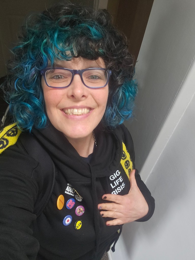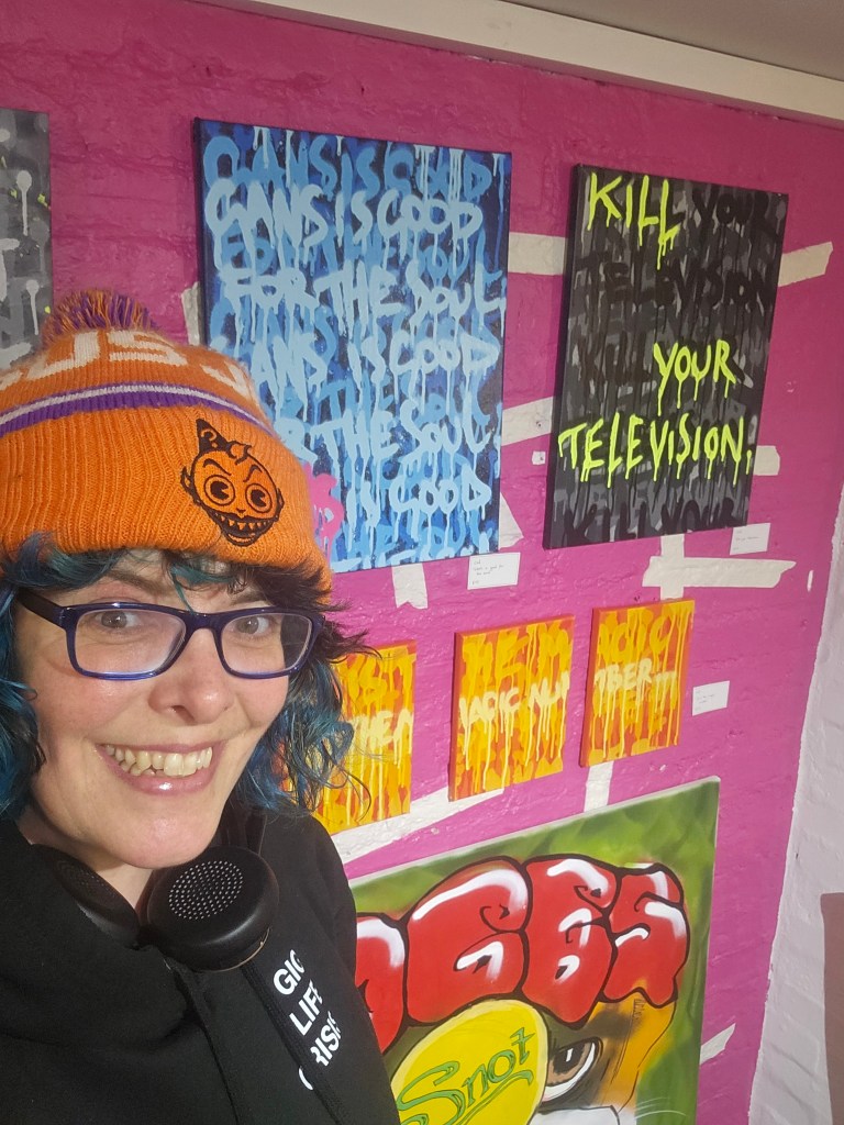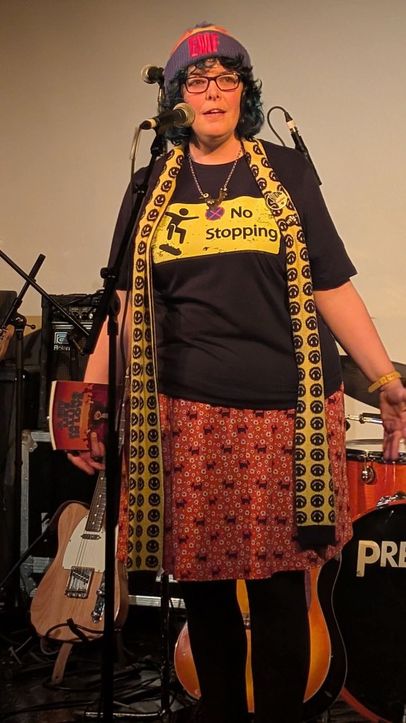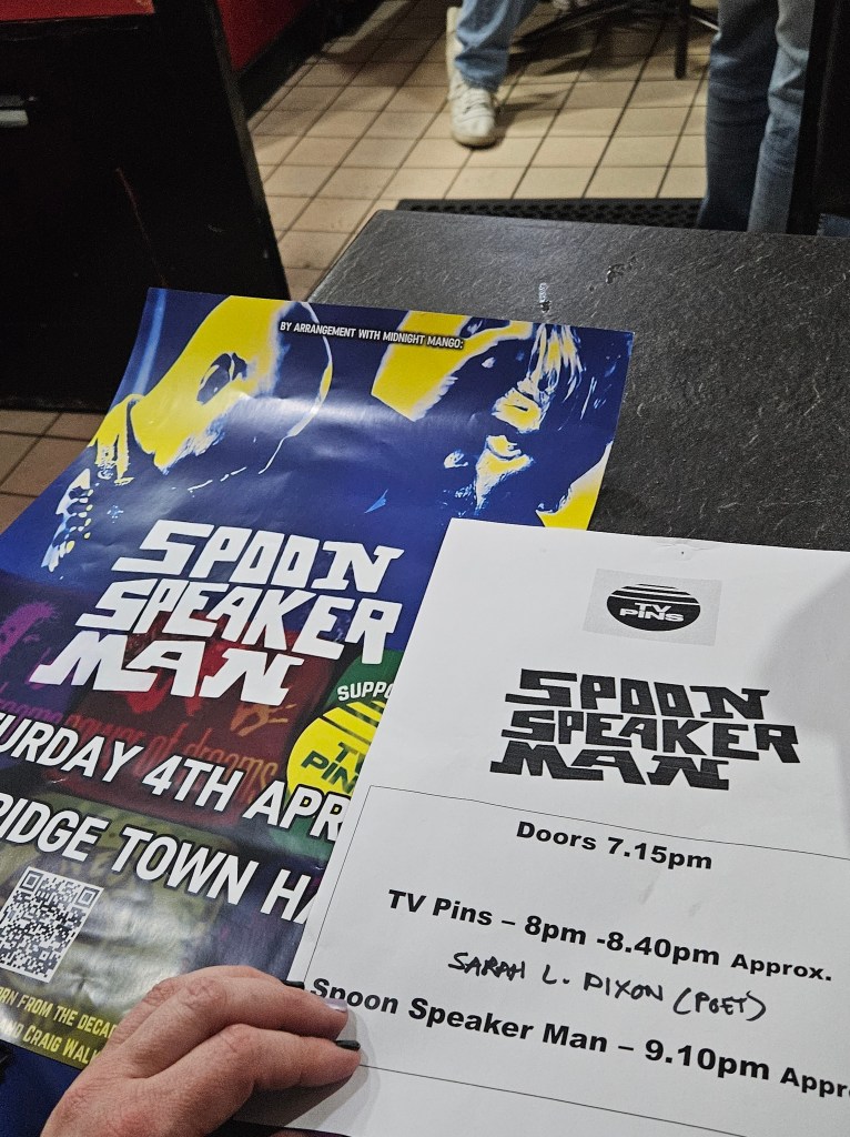 At the end of the night I had time to get to chat to the band properly and buy/swap some merch. They waited with me for my taxi outside the venue and talked me into being 90% convinced about going across to Stourbridge for the final gig of the tour. They then told me who the secret guests were. I said to Kerry I was thinking of coming across and Kerry said, what do you reckon to doing a poem between the bands, then, I couldn’t turn down that offer. I told them I would see them on the Saturday I booked my £33 Air B and B and train in the taxi home.