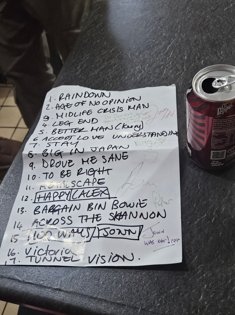 As I was leaving the station there was one person at the ticket desk, they said ‘Aren’t you Sarah from Shiiine? I accosted you outside the toilets…’ she asked me for a photo and then caught a train to Birmingham to meet a friend for drinks. By the time the gig started later she had come back from Birmingham in time for the start.