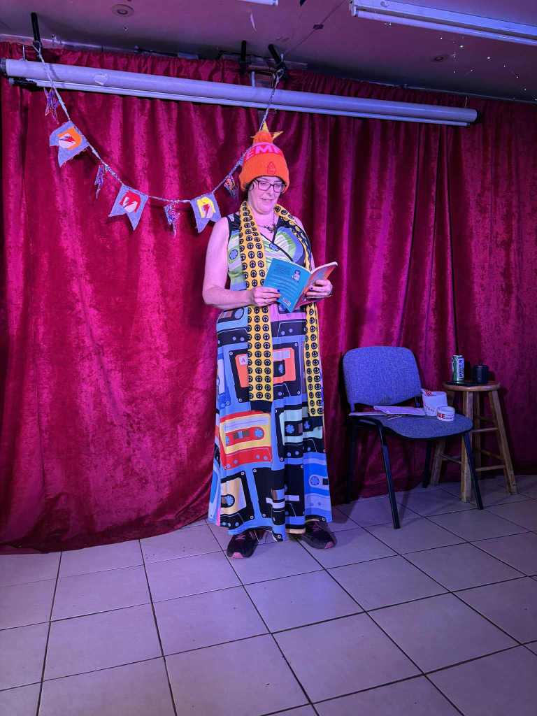 The poems she read showed us the relevance of music in her life and the support it gave her through the hard times. From evenings at Morecambe Bay to first gig after COVID, Sarah shows us pivotal moments in her life, and adventures enjoyed in following her favourite bands.